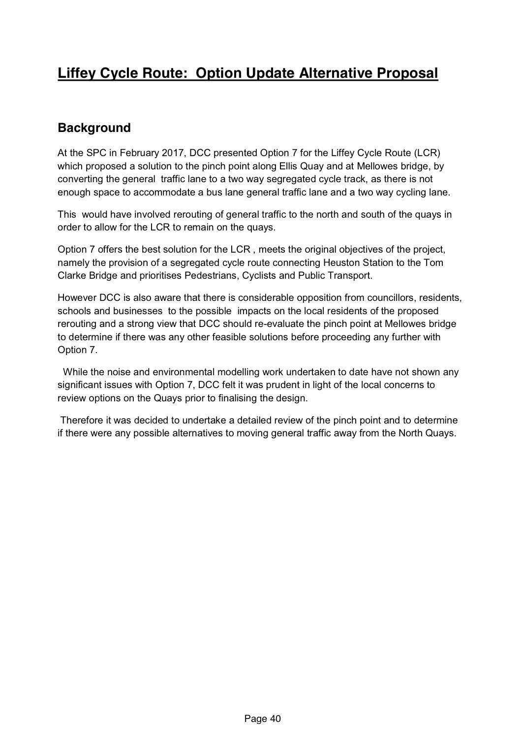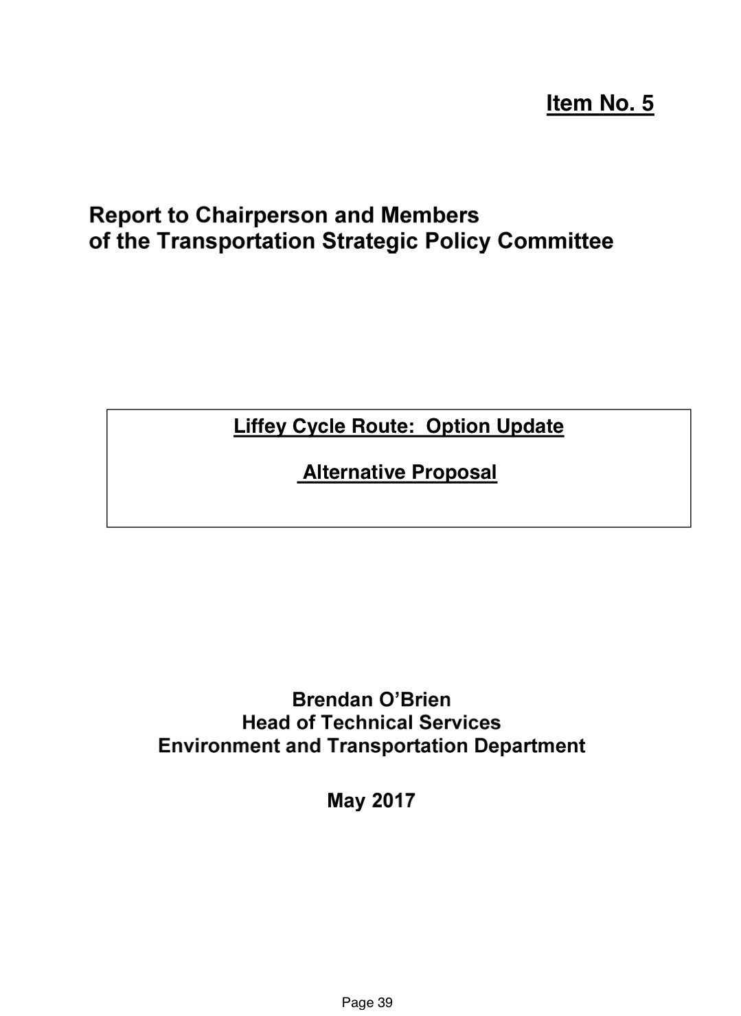 City Council Report into Liffey Cycle Route – May 2017 Transport SPC