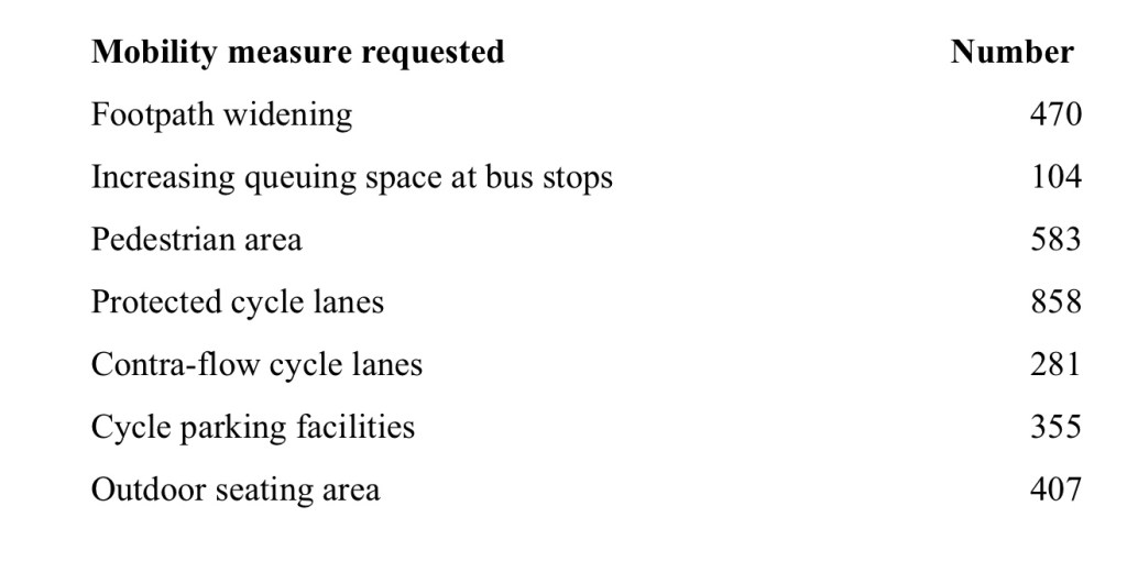 Secondly, pedestrian counts at 9 key cordon locations were carried out in May, June and July. These showed that the number commuting by foot in the morning peak was only at 20% of pre-COVID levels at the start of July. Further counts to assess how many pedestrians are commuting into the city centre commenced mid-August. The results show that pedestrian commuters had not increased at the end of August. Counts are currently underway to ascertain what effect the return to school is having.