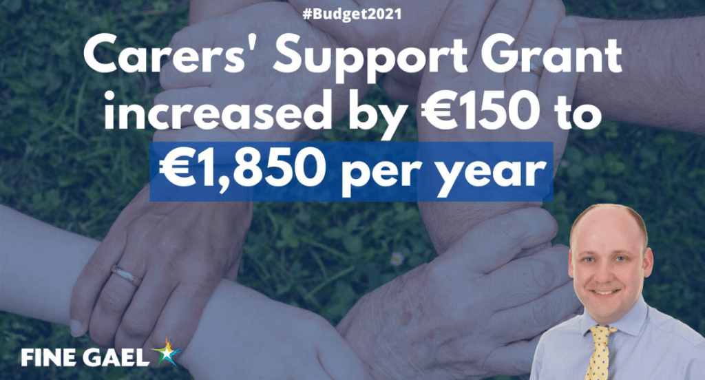 “This Budget will also support carers and people with disabilities. 2021 will see the highest ever Carer’s Support Grant of €1,850 per year – an increase of €150 – to benefit over 130,000 carers.