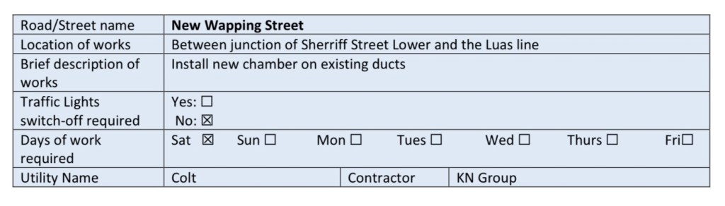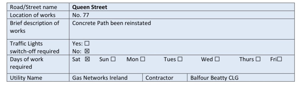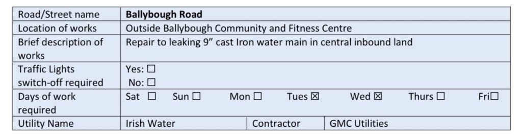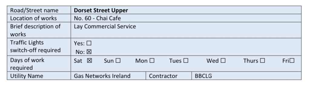 – Closed (from Halliday Road to Manor Place), Dublin 7