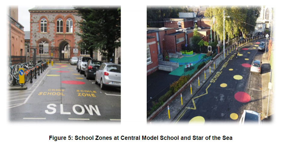 The Road Safety Section recommended the reduction of the speed limit from 50 km/h to 30 km/h at all school locations in Dublin. This will reduce traffic congestion, improve air quality, and will encourage cycling and walking among children with the associated benefits of better physical and mental health and better concentration.