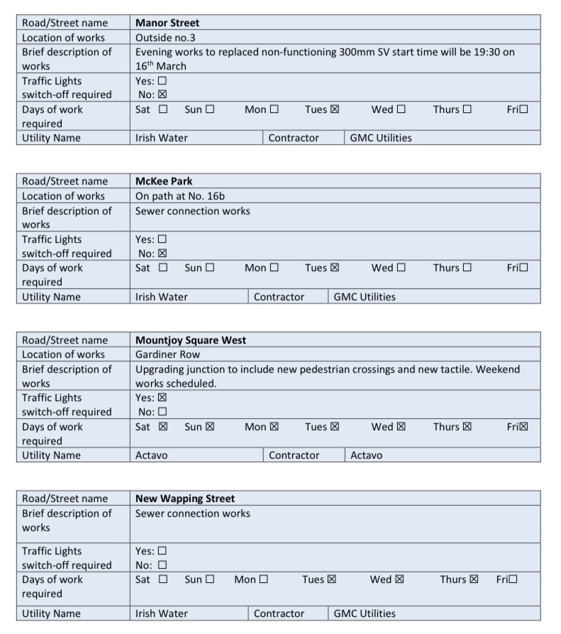Arbour Hill, Ballybough, Broadstone, Church Street, City Centre, Clonliffe Road, Constitution Hill, Drumcondra, Dublin City Council, East Wall, Fine Gael, Glasnevin, Grangegorman, Markets, Montpelier, North Circular Road, North Strand, North Wall, Phibsborough, Quays, Rathdown Road, Smithfield, Stoneybatter, Transportation