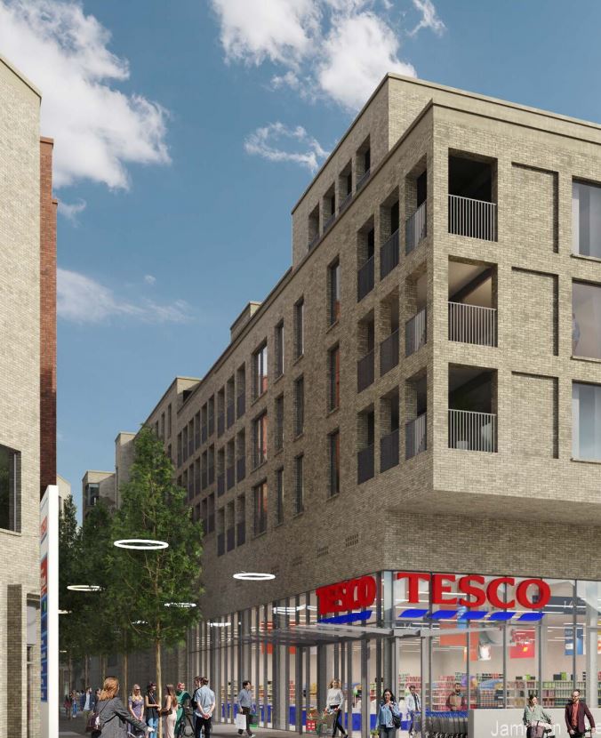 - A Build-to-rent residential accommodation overhead the supermarket with lift and stair access from Prussia Street, comprising 29x apartments with balconies (28x 2 bedroom and 1x 3 bedroom units) and 3x 2 bedroom townhouses, laundry room, lounge/games room, bicycle store, waste store and podium garden with conservatory allotments.