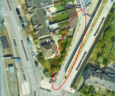 Below are some images of the current thinking of the Council in respect of finalising a permanent scheme outside the Bring Centre. You will see that several parking spaces are being provided, nine in total. Engineers suggest that a maximum stay of 30 minutes will be put in place in order to increase the utilisation of these car parking spaces. It is also envisaged that the reduction to a 30-minute maximum stay period will also remove parking by construction workers in the area.