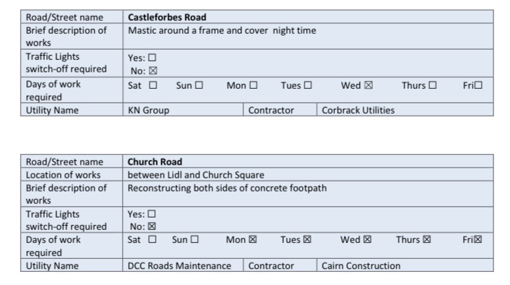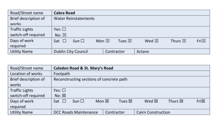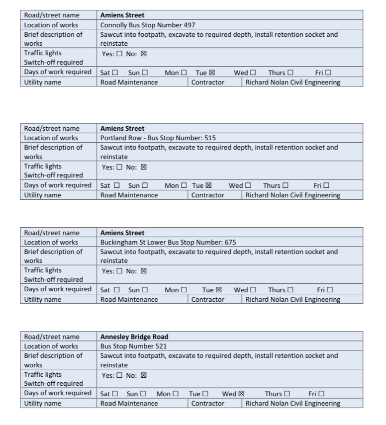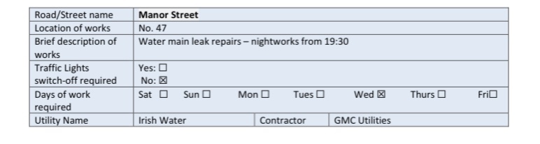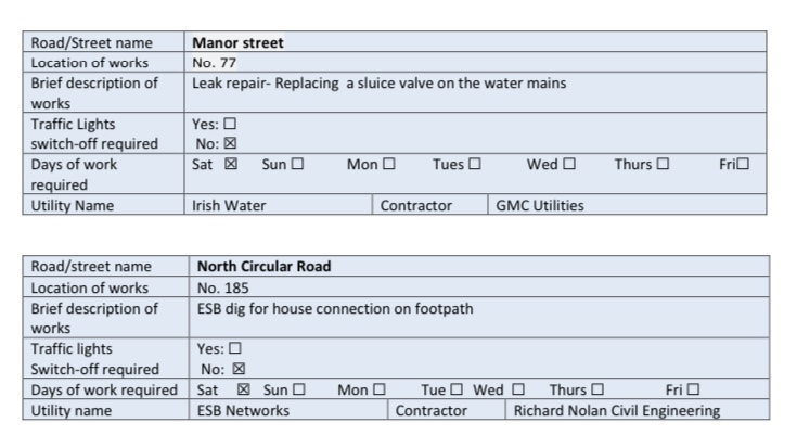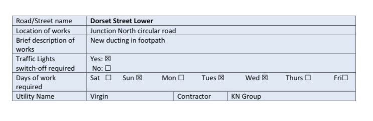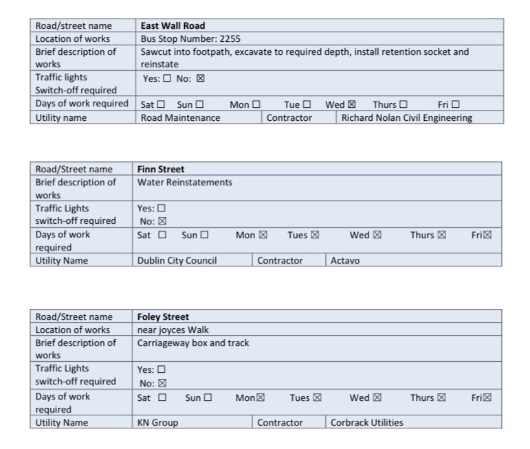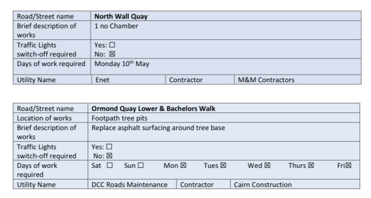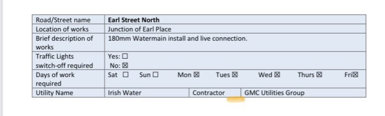– Traffic on Mary’s Lane wishing to travel on Mary Street Little to Capel Street will be diverted via