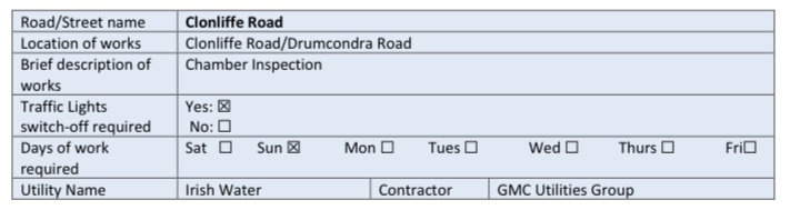 – Traffic on Thor Place wishing to travel on O’Devaney Gardens to North Circular road will be diverted via new temporary road, Montpelier Gardens and Infirmary Road.