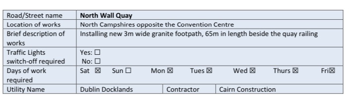 – Closed to facilitate the completion of infrastructure works for O’Devaney Gardens Housing Project Phase 1.