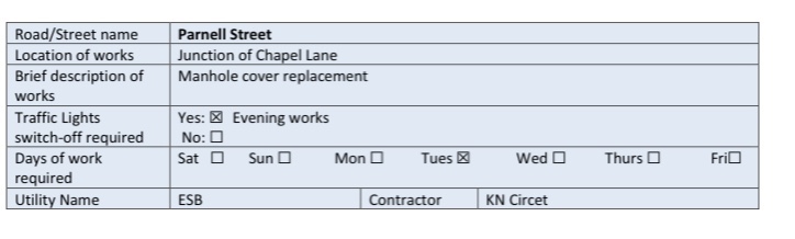 – Traffic on North Circular Road heading West and wishing to travel on O’Devaney Gardens to Montpellier Gardens will be diverted via Infirmary Road.