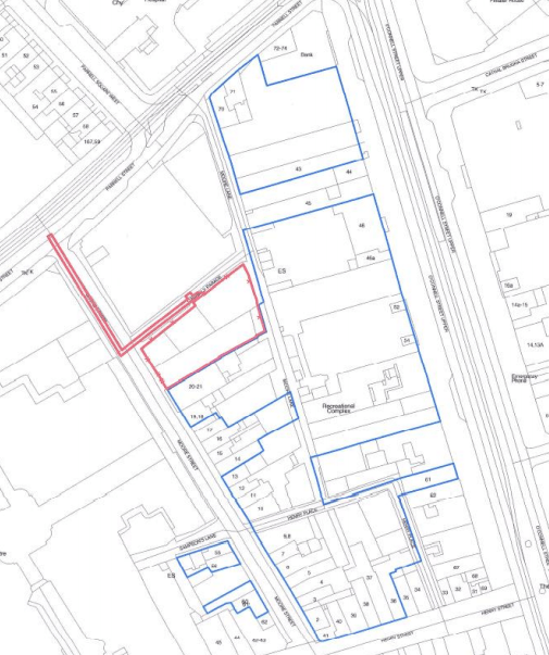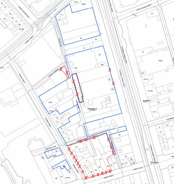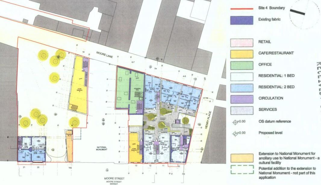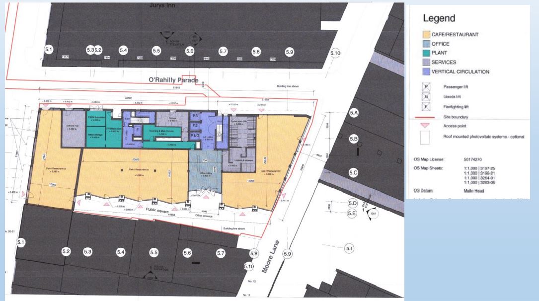 Site also includes the rear of 50 – 51 and 52 – 54 Upper O’Connell Street, 13 Moore Lane, 14 Moore Lane (otherwise known as 1–3 O’Rahilly Parade and 14–15 Moore Lane or 1–8 O’Rahilly Parade and 14–15 Moore Lane).