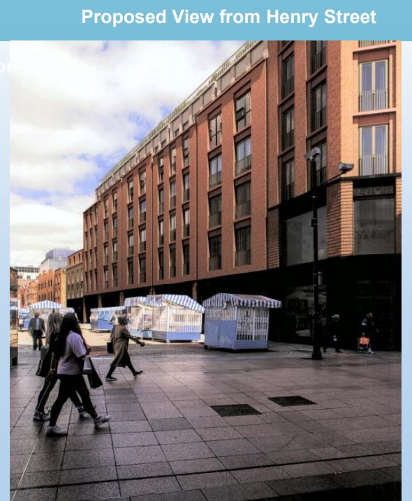Demolition of all other existing buildings and structures on site (c.6,701m2) including 38 Henry Street, to form a new passageway linking Henry Street to Henry Place;