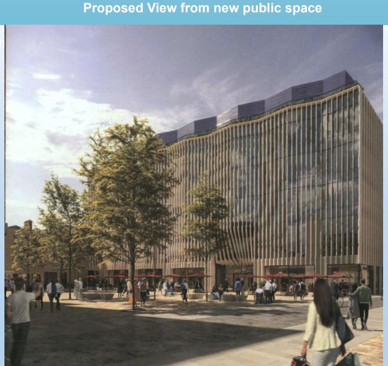 – Provision of part of a new public plaza (168m2) and associated temporary works pending completion of the combined plaza with the concurrent planning application for the adjoining Site 4 immediately to the south (1,253m2public plaza overall);