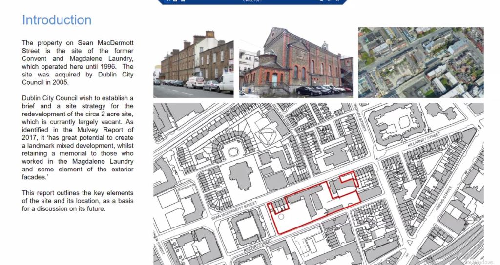 Finally, it was agreed that a Working Group be established with a view to reporting back by the end of October on a draft redevelopment Brief for the site. I will be a member of the Working Group which also includes two other Councillors and three officials from the Local Area Office and the Planning & Development Department of Dublin City Council. I look forward to taking part in a process that, I hope, can put in train an effective process that will the former Convent Lands being redeveloped in a way that recognises the failings of our part but also can be a living space for the future.