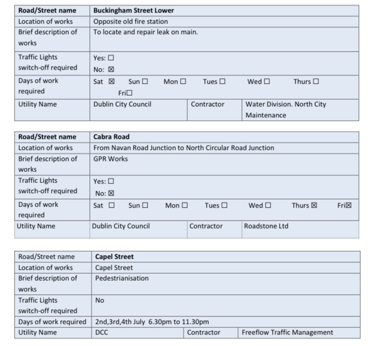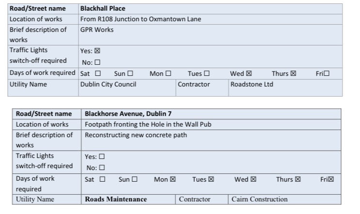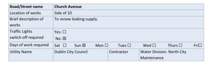 – Traffic on Thor Place wishing to travel on O’Devaney Gardens to North Circular road will be diverted via new temporary road, Montpelier Gardens and Infirmary Road.