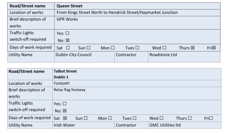 – Location A: Capel Street (Ryder’s Row to junction with Ormond Quay Upper), Dublin 1