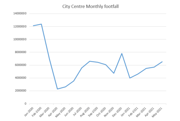 Examining the footfall since the start of 2020 we can see that currently footfall is similar to last summer (2020).