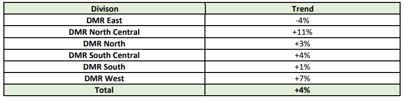 Domestic Abuse Incidents in the DMR are +4% YTD.