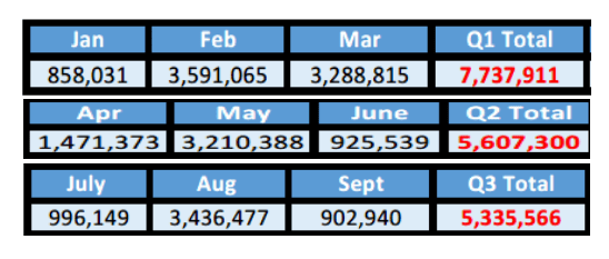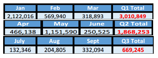 Overview of the monetary value of cash seized in the DMR, January – September, 2021, inclusive.