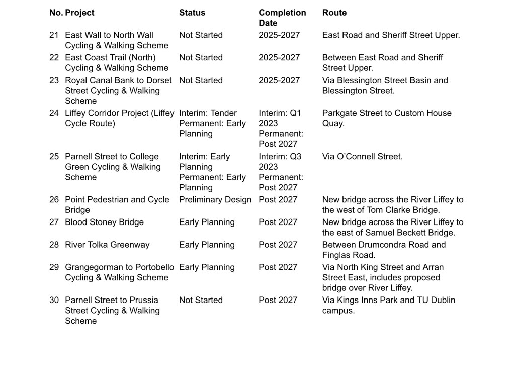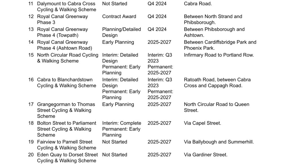 I’ll have a specific breakdown of the funding in the coming days but below is the most up to date report on each of these exciting projects planned in, through and across the North Inner City which will be progressed this year to enhance our facilities for cycling and walking in Dublin.