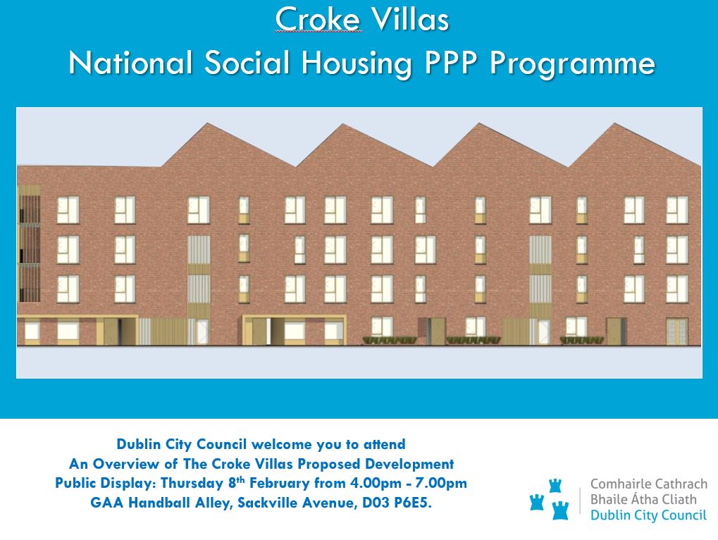 Further to my update on the Croke Villas redevelopment, prior to Christmas, I want to confirm that Dublin City Council is organising a community consultative meeting next week. The purpose of this meeting will be for City Council Housing officials to share details with you about the revised plans to redevelop the Croke Villas site and to provide information to you on the number of homes to be built, the height of the building and the other services that will be provided. This community meeting will take place on: