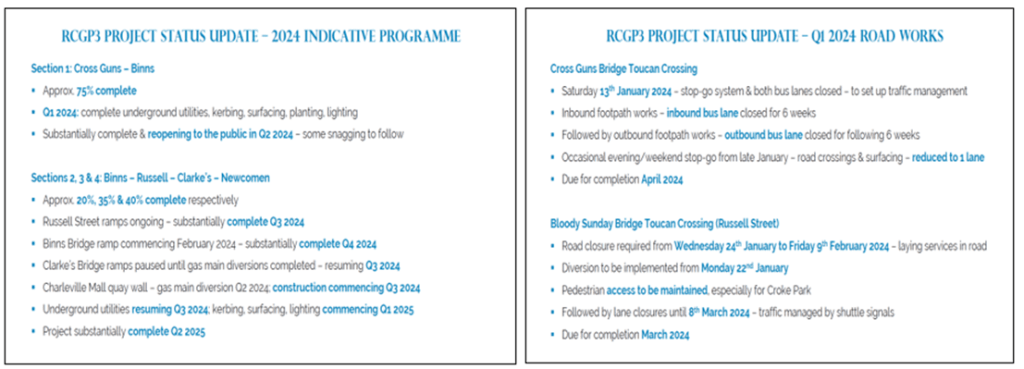 In January, I met with the City Council’s Active Travel Unit requesting a detailed programme of works planned for this year as part of Phase 3 of the Royal Canal Greenway Project. Attached below is information shared with me at that meeting: