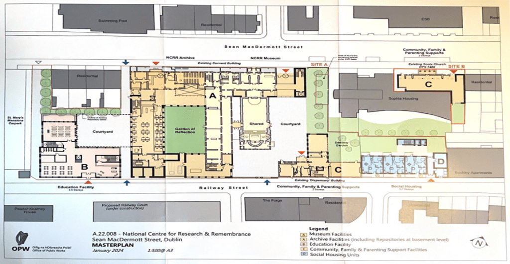 The redevelopment of the site will ultimately see a National Centre for Research and Remembrance Campus. The OPW has developed a draft strategic Master Plan which informs the design of the various buildings and other aspects of the redevelopment. Through the provision of senior citizens’ public housing, community and educational facilities, this project will provide job opportunities, specialised supports for children, and third level educational facilities locally. Coupled with a garden of reflection and an archive, the redeveloped site will provide an appropriate place to remember those affected and mistreated in Magdalen facilities.