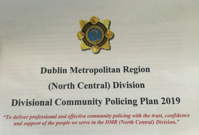 The Dublin Central Joint Policing Committee at its meeting on March 25th last formally adopted the North Inner City Community Policing Plan 2019. The Plan set out the core community … Continue Reading North Inner City Community Policing Plan 2019