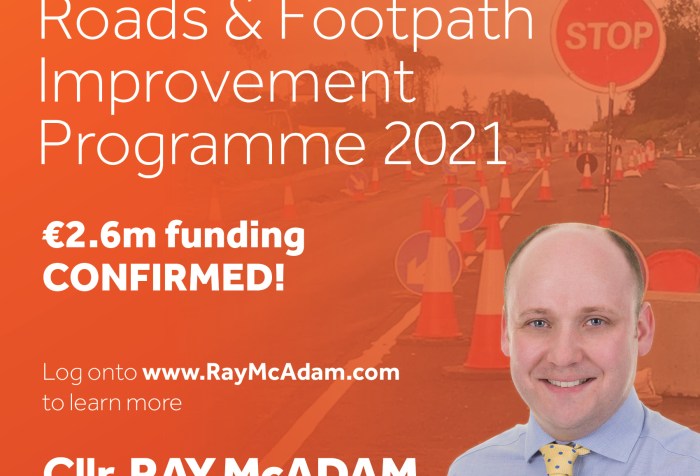 Fine Gael Councillors in Dublin Central, Ray McAdam and Colm O’Rourke have confirmed that Dublin City Council has allocated €2.6m in funding this year to deliver a Local Roads Improvement … Continue Reading €2.6m FUNDING TO ENHANCE #DUBLINCENTRAL ROADS & FOOTPATHS