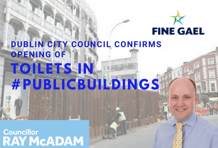 Public toilets to open in Sports Centres, Libraries and City Hall Dublin City Council is pleased to announce the opening of 22 of its public buildings on a “toilets only” … Continue Reading Dublin City Council confirm opening of toilets in #Public Buildings