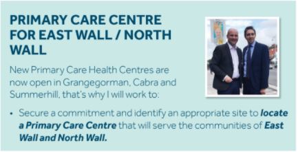 In recent weeks, East Wallers have been in touch seeking an update on Health Service Executive (HSE) plans to deliver a dedicated Primary Care Centre for the communities of East … Continue Reading Update on plans for new Primary Care Health Centre for East Wall.
