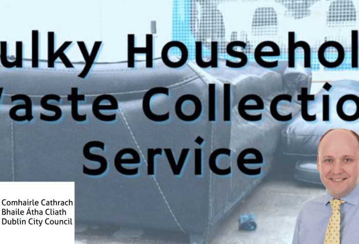 Good News! Dublin City Council’s online bulky waste ordering system has now gone fully online!! You can now request and pay for a service collection 24/7 as the entire process … Continue Reading Ordering your Bulky Waste collection online