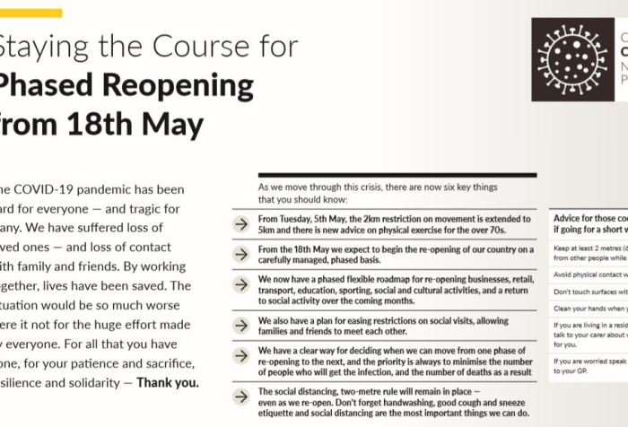 The Community Call, a major initiative that links local and national government with the community and voluntary sectors, was announced today by Government. The Community Call is an unprecedented mobilisation … Continue Reading Covid-19: Ireland launches “The Community Call” in major nationwide volunteering effort