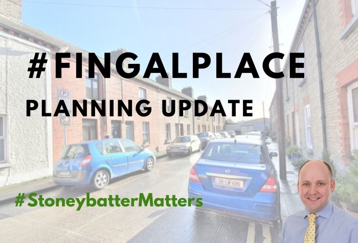 FINGAL PLACE PLANNING MATTERS PLANNING INFORMATION MEETING Last Monday (July 5th), I arranged for Fingal Place residents to meet with senior planning officials from Dublin City Council to discuss the … Continue Reading #Stoneybatter Planning Matters – Summer 2021