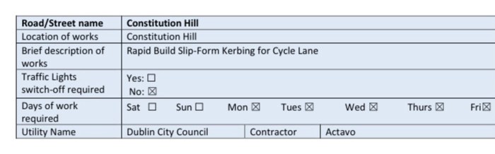 Dublin City Council’s Roadworks Control Unit has given permission for the following works to take place next week (October 31st – November 6th): Each of these projects have been approved … Continue Reading #NorthInnerCity Roads & Traffic Works – October 2020