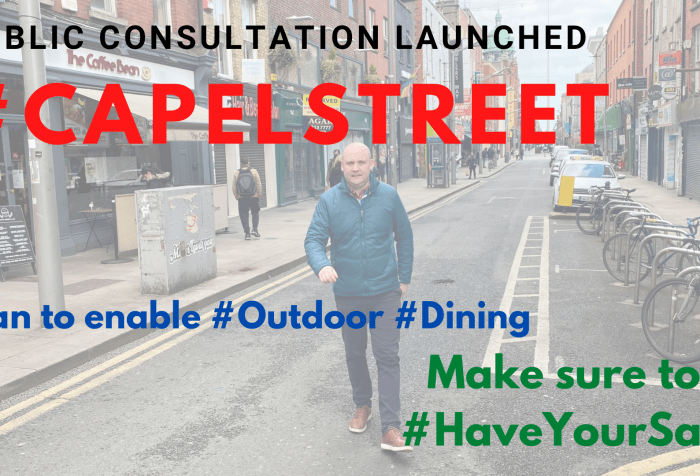 Dublin City Council has opened a public consultation on its plan to increase pedestrian space on Capel Street in order to enable hospitality businesses on the street to re-open with … Continue Reading Public Consultation opens for #CapelStreet #outdoor dining – #HaveYourSay